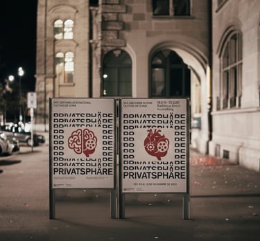 Project Summary: The initiative aimed to spark public conversation about privacy in city environments. Our task was to translate complex ideas–surveillance, autonomy, digital footprints—into bold, immediately recognizable design pieces displayed across urban locations.